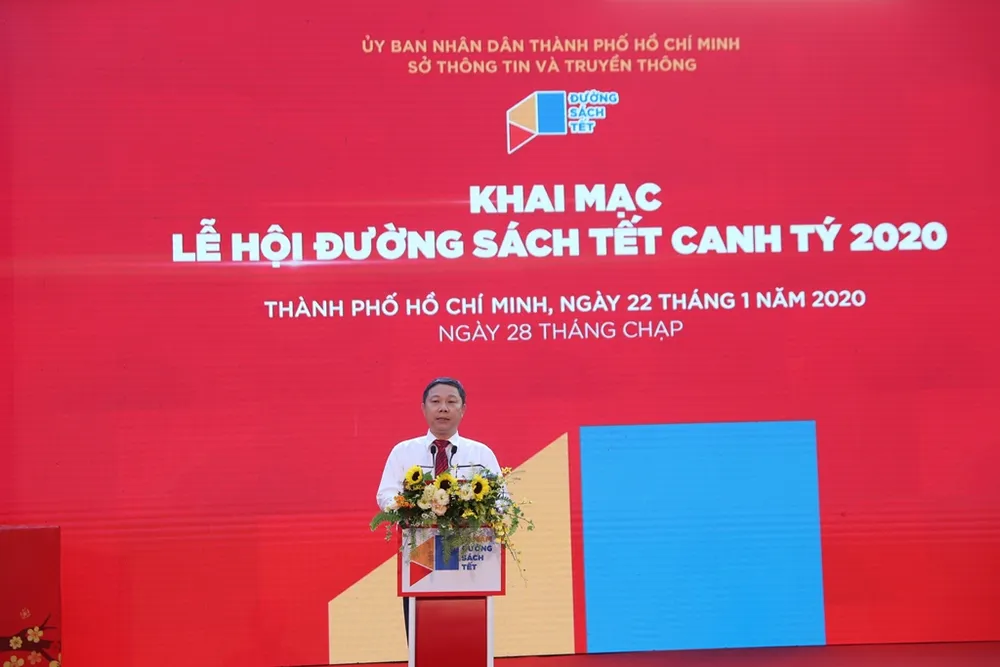 Ông Dương Anh Đức, giám đốc Sở Thông tin - Truyền thông TP.HCM phát biểu khai mạc đường sách.