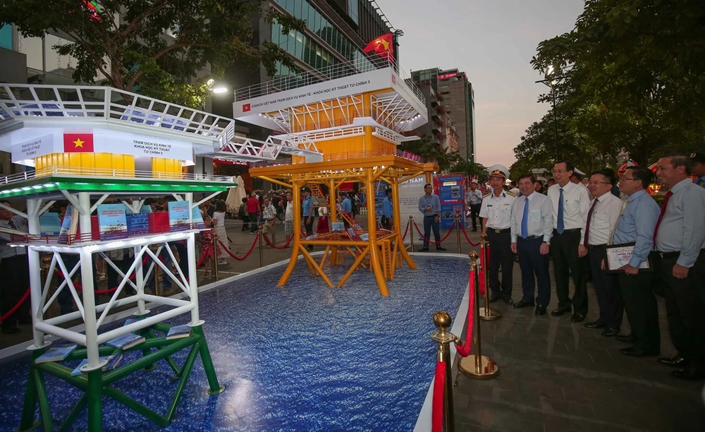 Tại đây còn có triển lãm mô hình Nhà giàn DK1, tư liệu và clip giới thiệu cột mốc hình thành và phát triển của nhà giàn DK1 trong 30 năm qua.