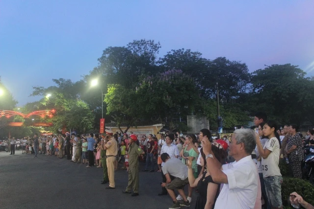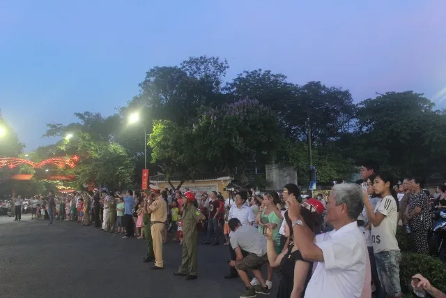 Rất đông người dân đứng dọc tuyến đường để xem đoàn rước.