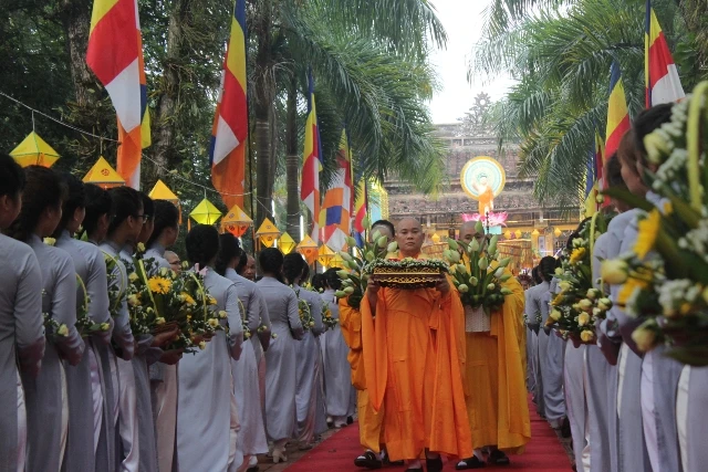 Các tăng ni, Phật tử bắt đầu rước phật từ tổ đình Diệu Đế đến chùa Từ Đàm.