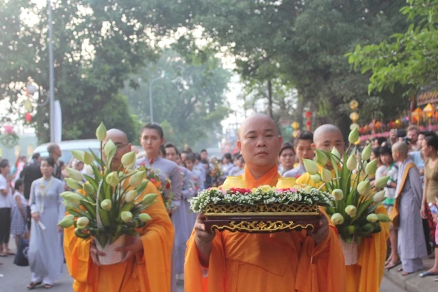Trên các tuyến phố về chùa Từ Đàm trong một không khí trang nghiêm và tôn kính, đông đảo người dân đứng dọc các tuyến đường đoàn rước đi qua để xem và lễ Phật. Đoàn rước bắt đầu từ chùa Diệu Đế đến chùa Từ Đàm qua đường Trần Hưng Đạo, qua cầu Trường Tiền đến đường Lê Lợi, đường Điện Biên Phủ.