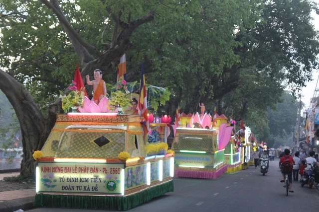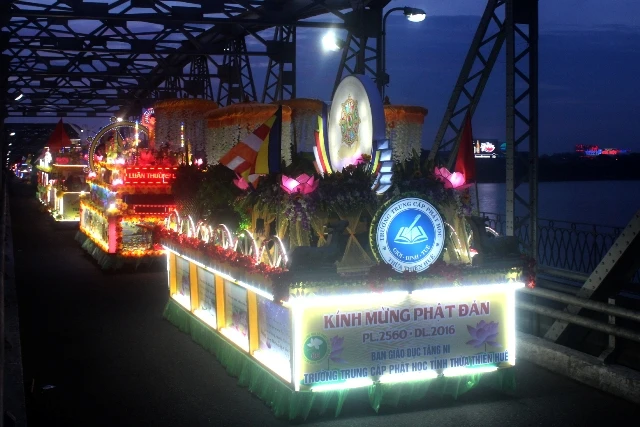 Sau đó, tiến hành lễ rước Phật từ chùa Diệu Đế đến chùa Từ Đàm. Điều khác biệt của lễ rước Phật năm nay là thay vì đi bộ như những năm trước thì tiến hành rước bằng 104 xe hoa.