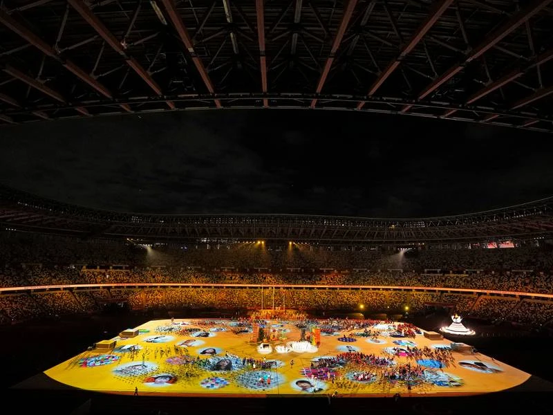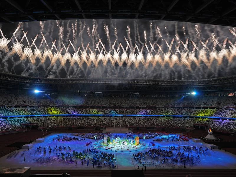 Sân Olympic Tokyo rực rỡ sắc màu của đêm bế mạc.