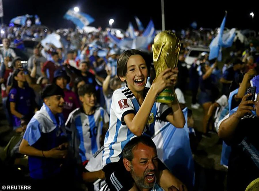 Các fan Argentina có rất nhiều cách ăn mừng chức vô địch World Cup 2022. ẢNH: REUTERS, GETTY |
