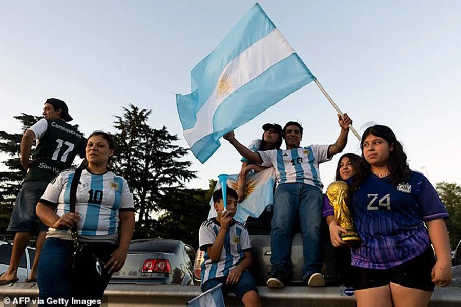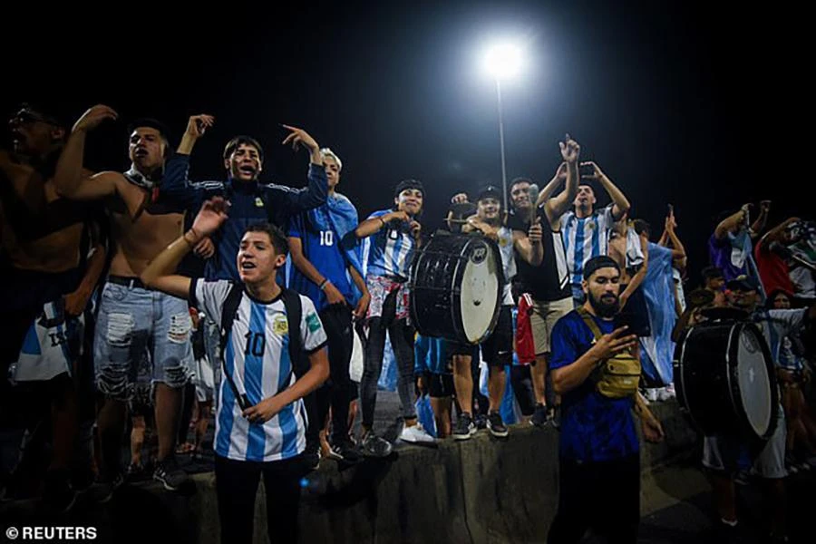 Người hâm mộ ở thủ đô Buenos Aires của Argentina đã tràn ra đường khi họ chờ đợi sự trở lại của những người anh hùng dân tộc. Bất chấp chuyến bay hạ cánh muộn, nhiều người vẫn thức để tập trung bên ngoài trụ sở Liên đoàn bóng đá Argentina để chào đón đội tuyển.
