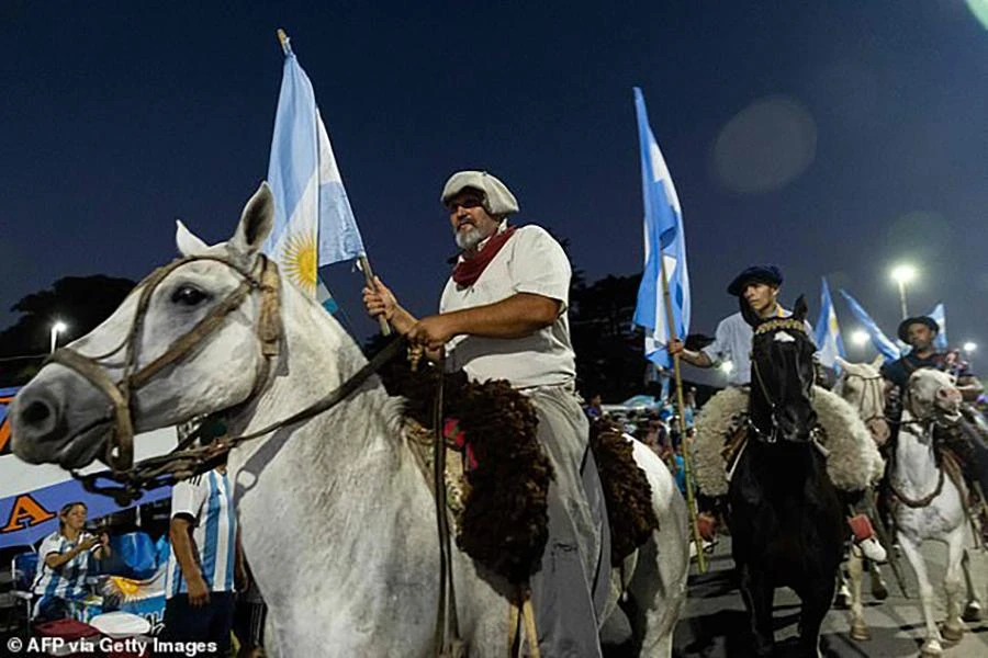 Một số cổ động viên thậm chí còn được phát hiện cưỡi ngựa vẫy quốc kỳ, còn bản sao của chiếc cúp vô địch thế giới được treo trước mặt họ. Trong khi các cổ động viên ở quê nhà đang chuẩn bị ăn mừng cùng đội thì các cầu thủ Argentina đã bắt đầu bữa tiệc ngay trên chuyến bay về nước.