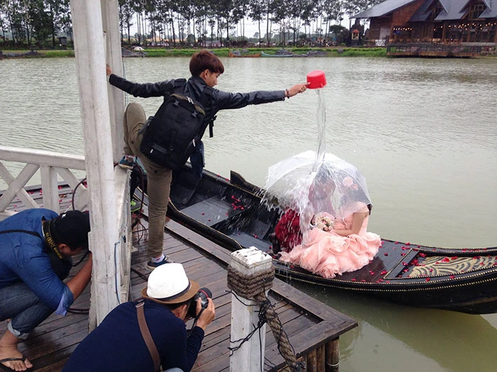 Không chỉ cô dâu, chú rể mới phải tạo hình khi chụp ảnh cưới.