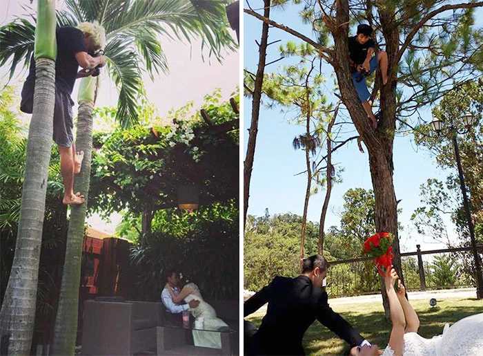 Đủ thấy, nghề nhiếp ảnh cưới đôi khi cũng phải trang bị khả năng leo cây.