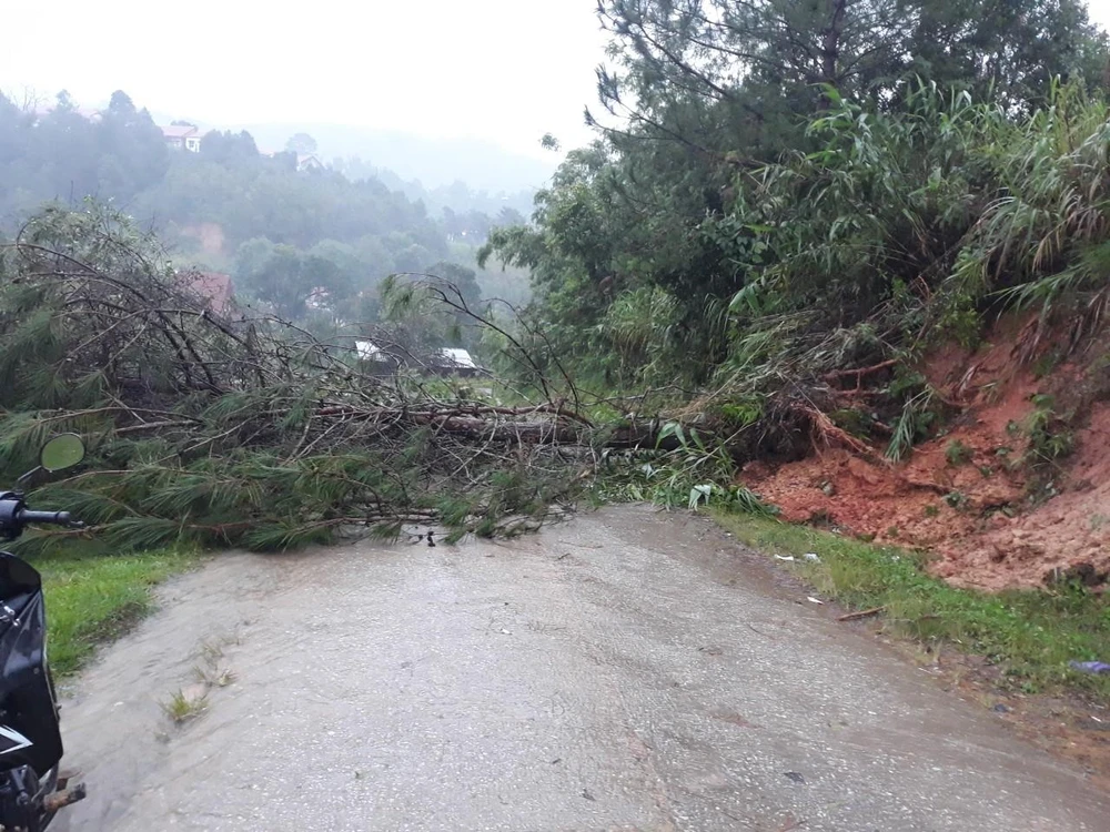 Chính quyền địa phương cử người cắt cây ngã đổ ven đường. Ảnh: LX |