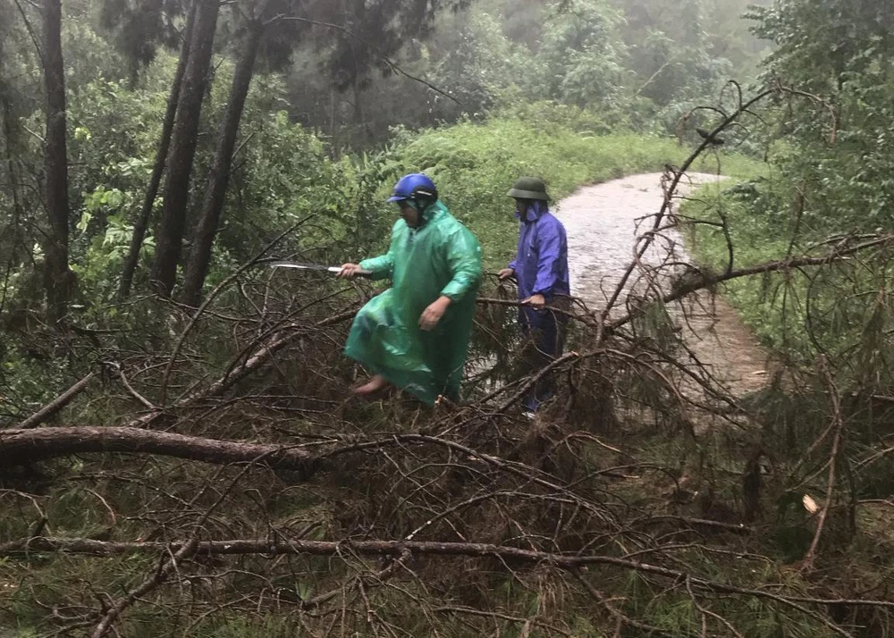 Từ sáng sớm chính quyền địa phương đã vào cuộc khắc phục hậu quả ảnh hưởng của bão số 4. Ảnh: AX |