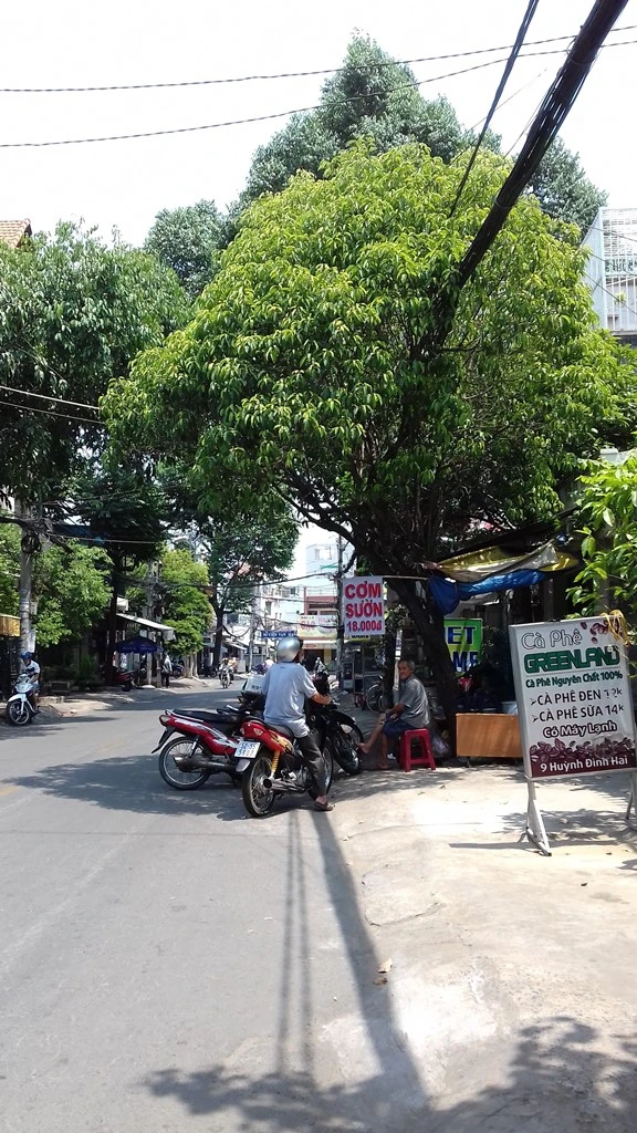 Quán cơm giữ xe ngay dưới lòng đường, ảnh chụp trên đường Phan Chu Trinh, Bình Thạnh