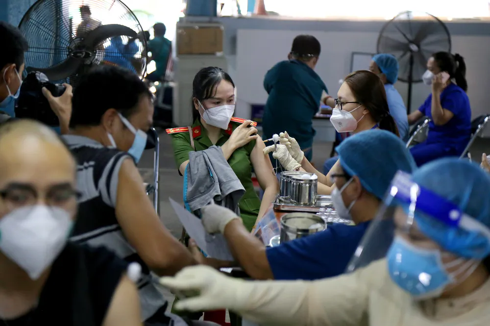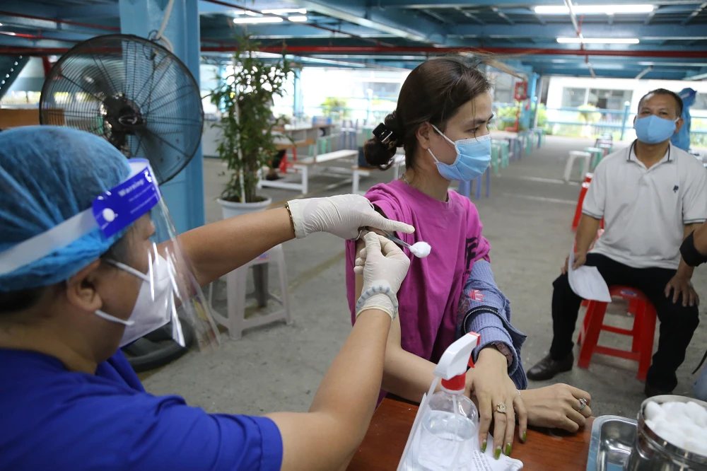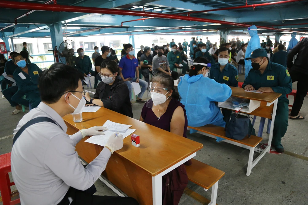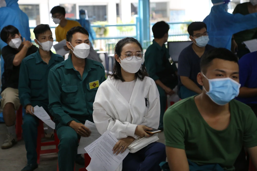 Anh Lê Văn Hoàng - cán bộ Trung tâm Y tế quận Gò Vấp, Phó trưởng phụ trách điểm tiêm trường Đại học Công nghiệp, cho biết đơn vị đang cố gắng hoàn thành tiêm chủng cho các lực lượng tuyến đầu chống dịch trong một tuần. Hai tuần tiếp theo, đơn vị sẽ tiêm cho các đối tượng khác theo quy định.
