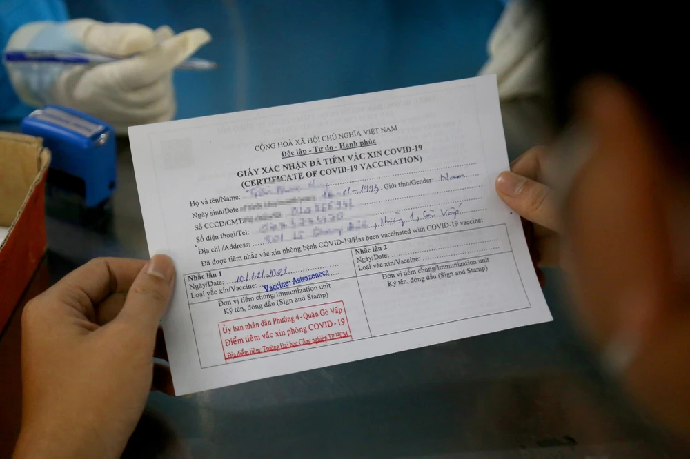 Người được tiêm mũi bổ sung, nhắc lại được cấp giấy chứng nhận sau tiêm.