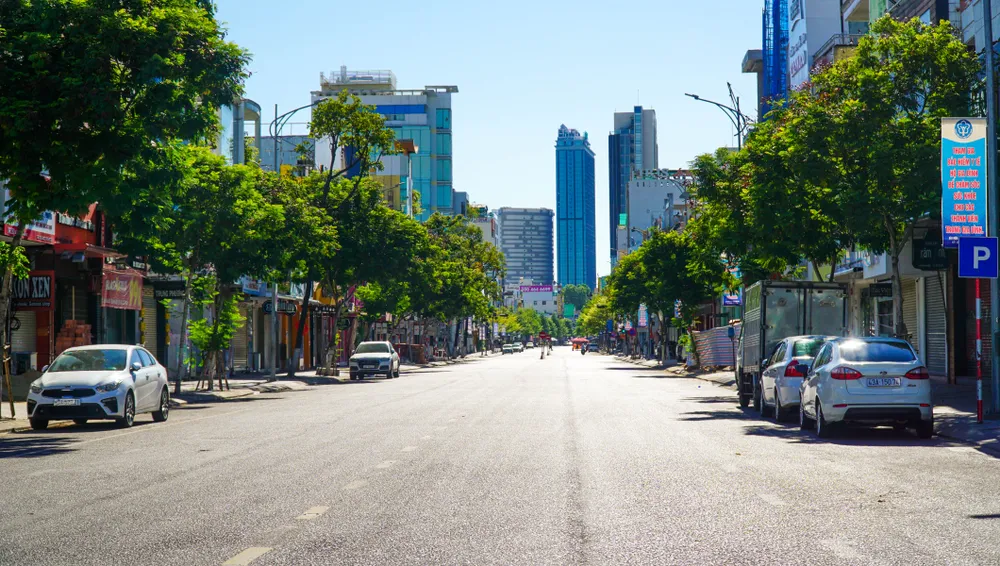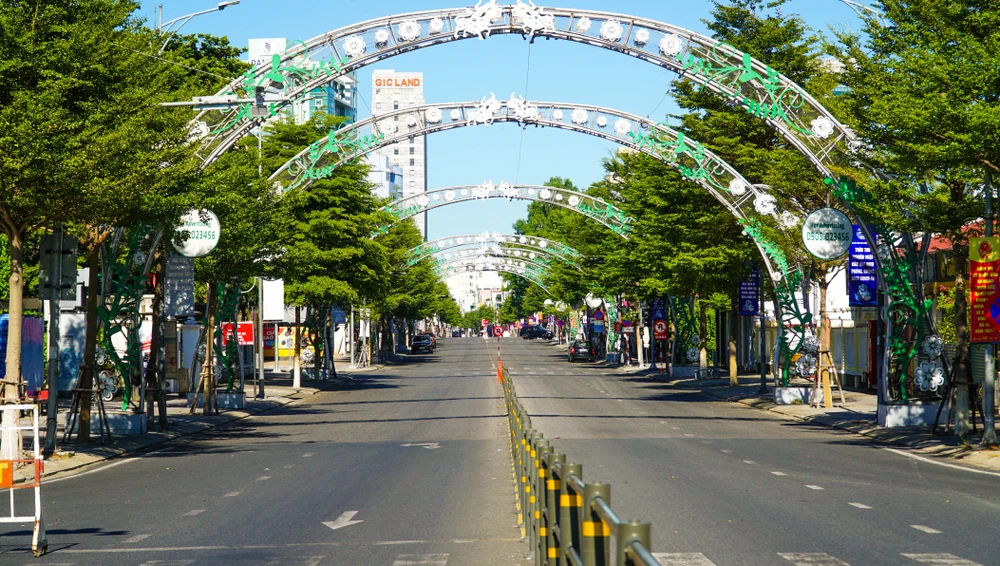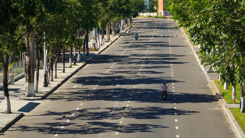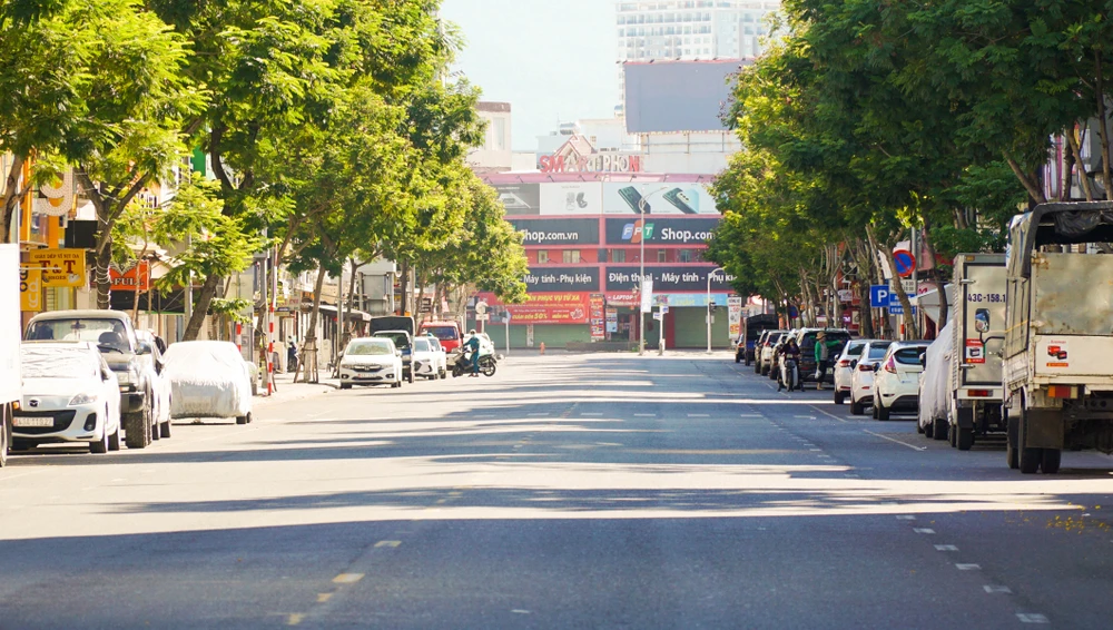 Cảnh vắng lặng tại đường Trần Hưng Đạo (quận Sơn Trà, Đà Nẵng). Ảnh: B.T