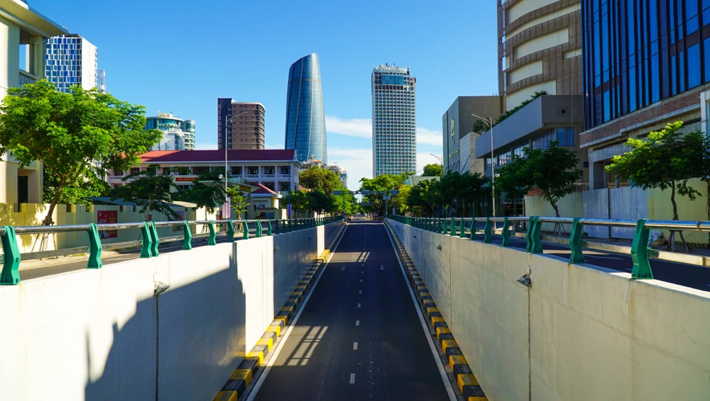Khu vực hầm chui đường Trần Phú (quận Hải Châu) không một bóng người. Ảnh: B.T