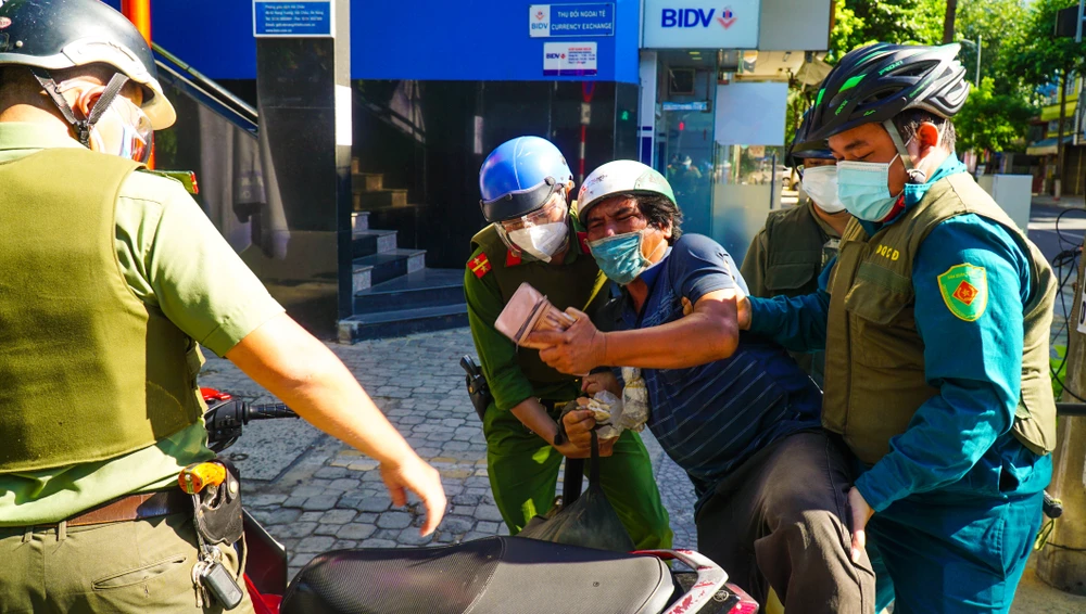 Nhiều trường hợp cố tình vi phạm về lệnh giãn cách sẽ được lực lượng chức năng đưa về phường xử lý theo quy định của pháp luật. Ảnh: B.T