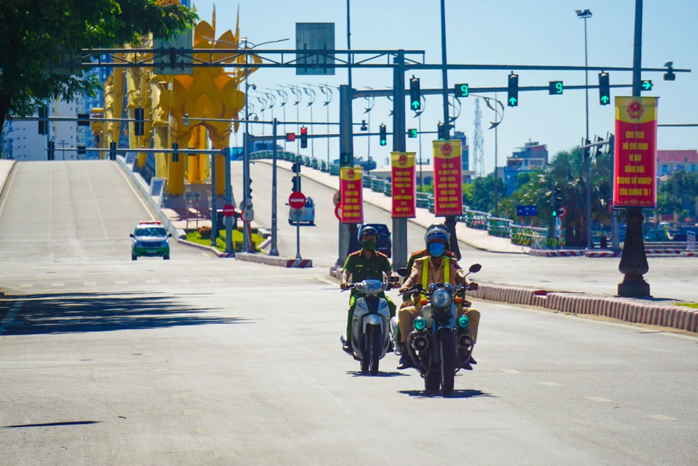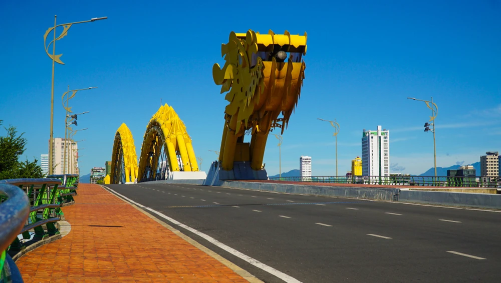 Cầu Rồng không một bóng người. Những ai không được phép ra đường mà ra đường sẽ bị xử phạt ngay lập tức. Ảnh: B.T