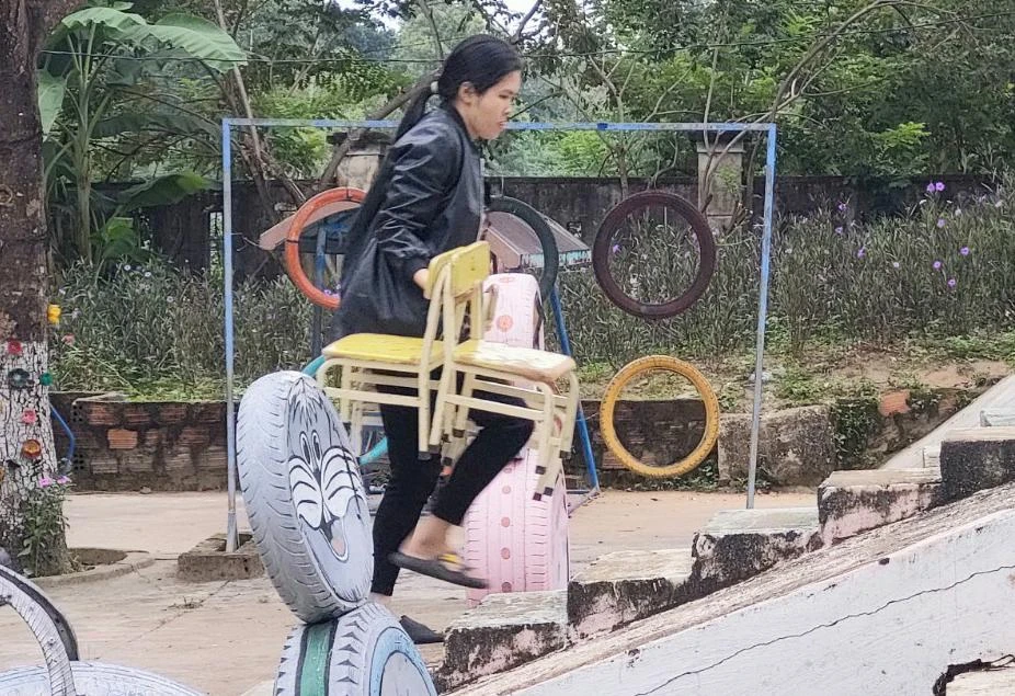 Vận chuyển bàn ghế học sinh vào nơi an toàn. Ảnh: LX |