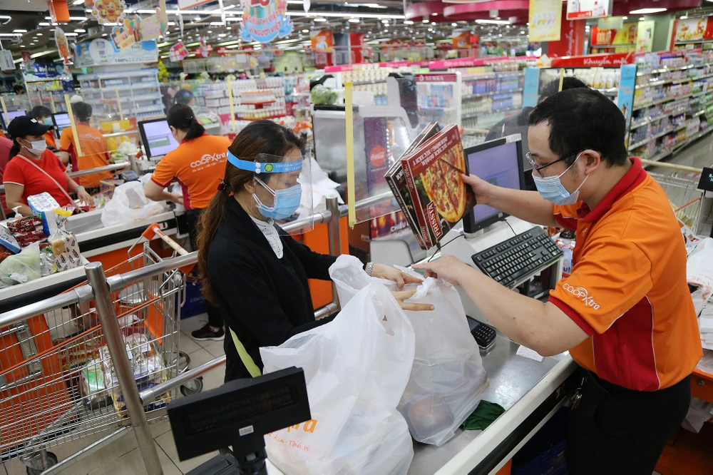 Trao đổi với Pháp Luật TP.HCM, ông Lâm Văn Tỷ, Phó Giám đốc siêu thị Co.op Xtra Tân Phong, cho biết trung bình một ngày siêu thị đón khoảng từ 300-400 lượt người dân đi chợ. Nhân viên làm việc tại siêu thị phải đảm bảo tiêm đủ hai mũi vaccine hoặc nhân viên đã tiêm mũi một và đủ thời hạn tiêm mũi hai đang cư trú trong “Vùng xanh” trên địa bàn quận 7.