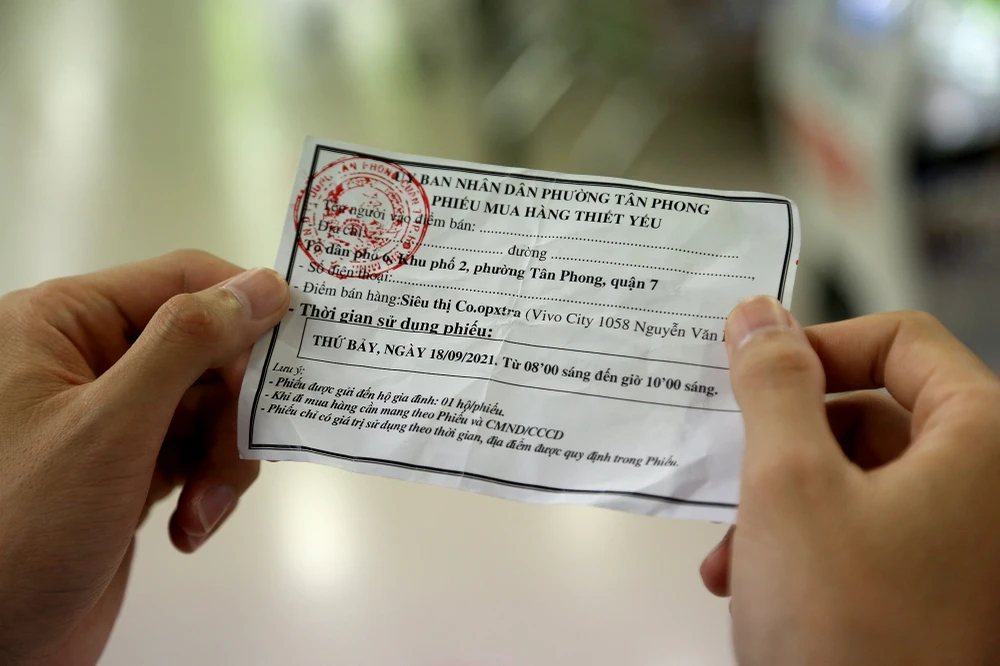 Phiếu đi chợ của người dân trong vùng xanh do UBND phường phát để đi chợ, siêu thị.