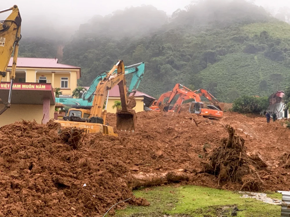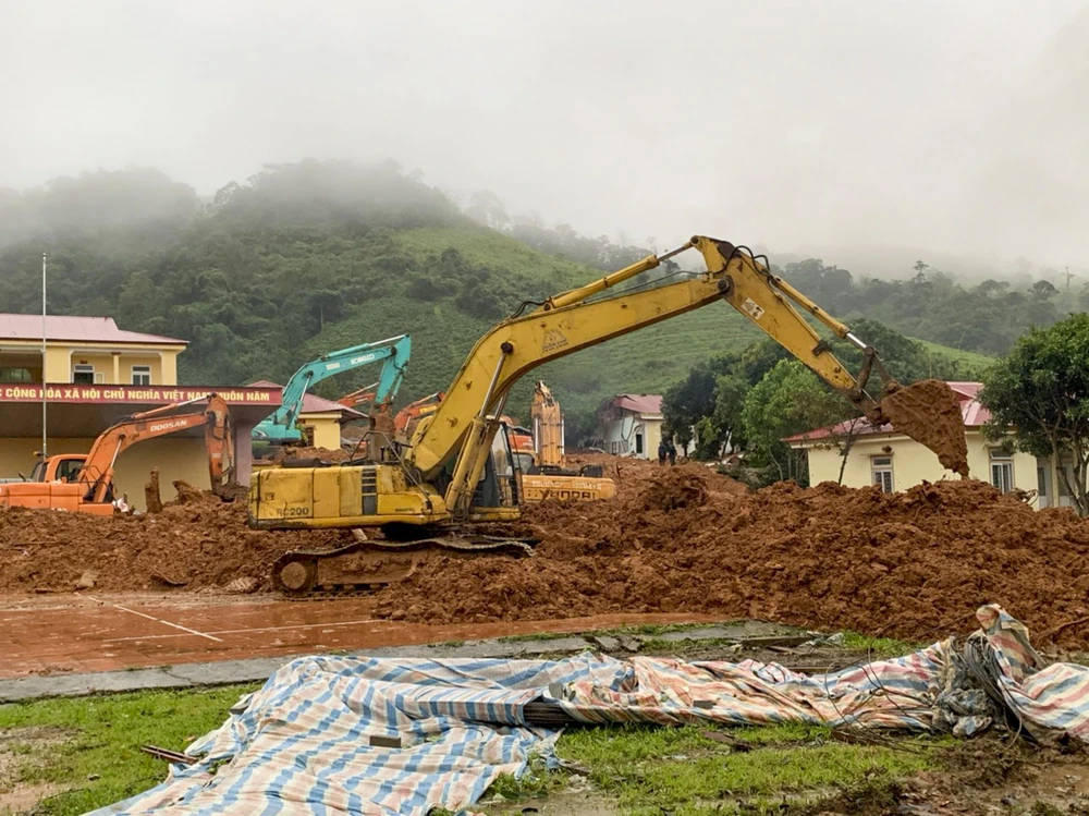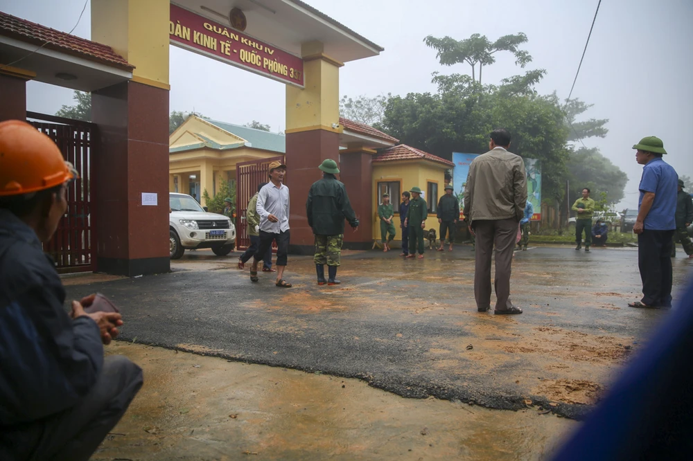 Phía bên trong, lực lượng chức năng vẫn đang tiếp tục tìm kiếm những cán bộ, chiến sĩ mất tích. Đến 12 giờ 30, lực lượng chức năng đã tìm được thi thể 19 người. Ảnh: Nguyễn Do