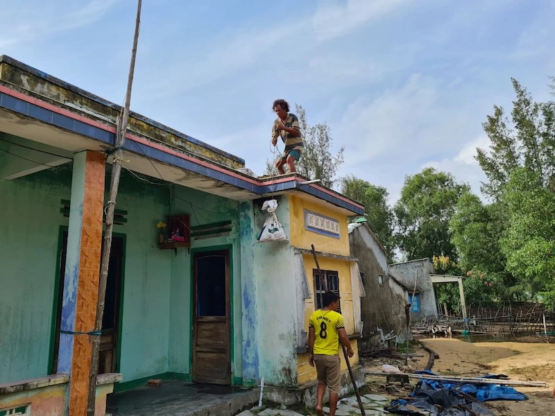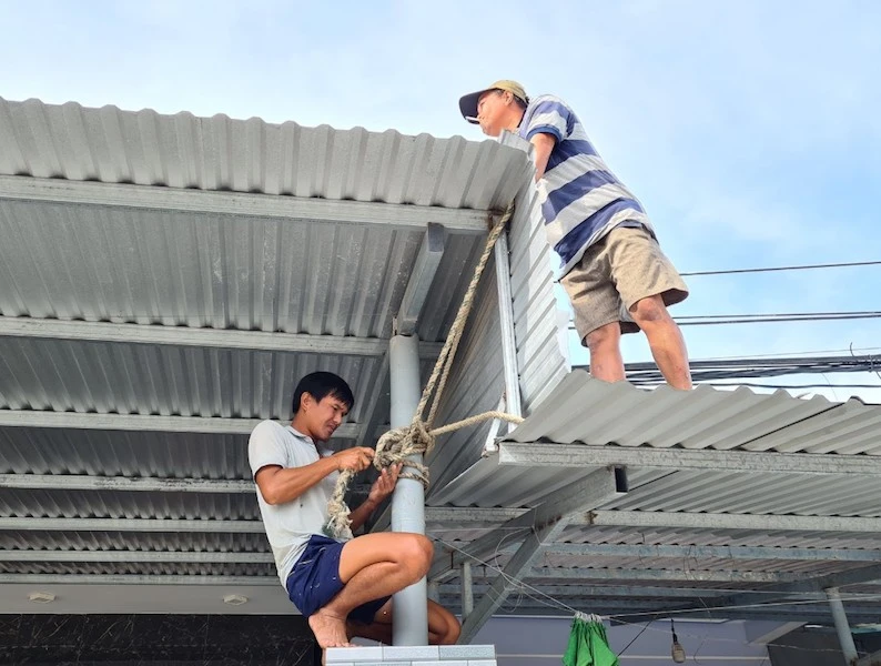 Dự báo bão số 9 sẽ rất mạnh, đổ bộ vào các tỉnh miền Trung nên người dân sẳn sàng dùng mọi biện pháp chằng chống nhà cửa.