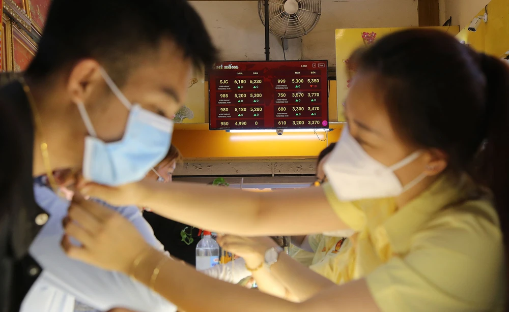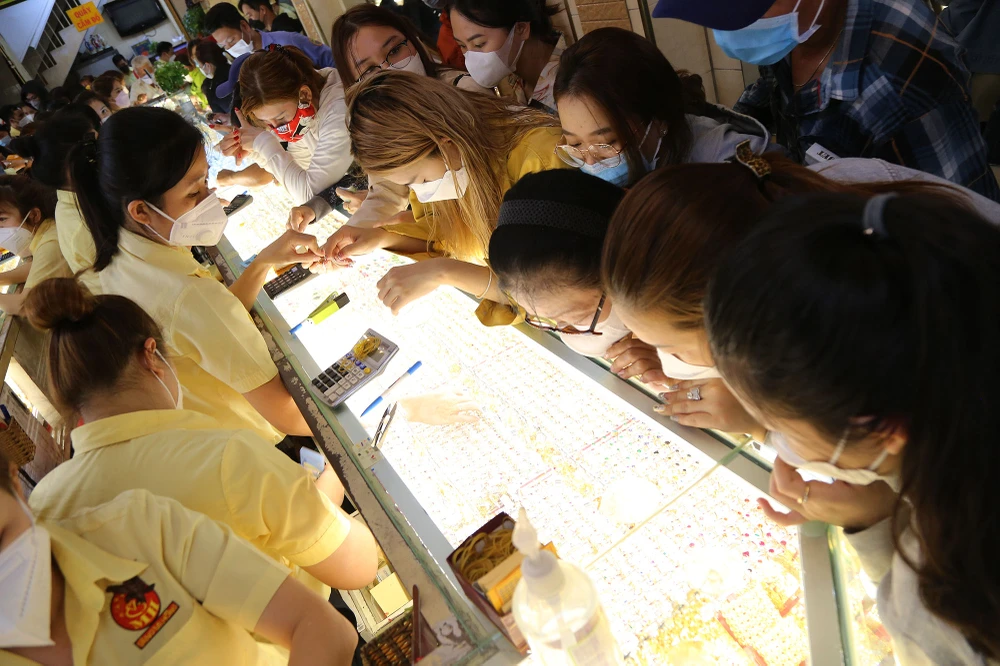 Khách ra vào thử, mua vàng liên tục không ngớt.