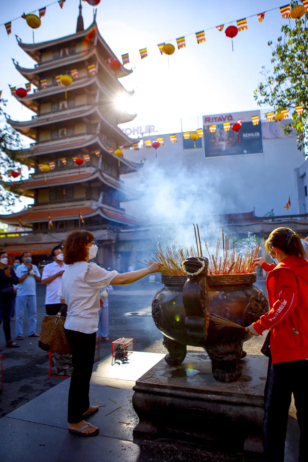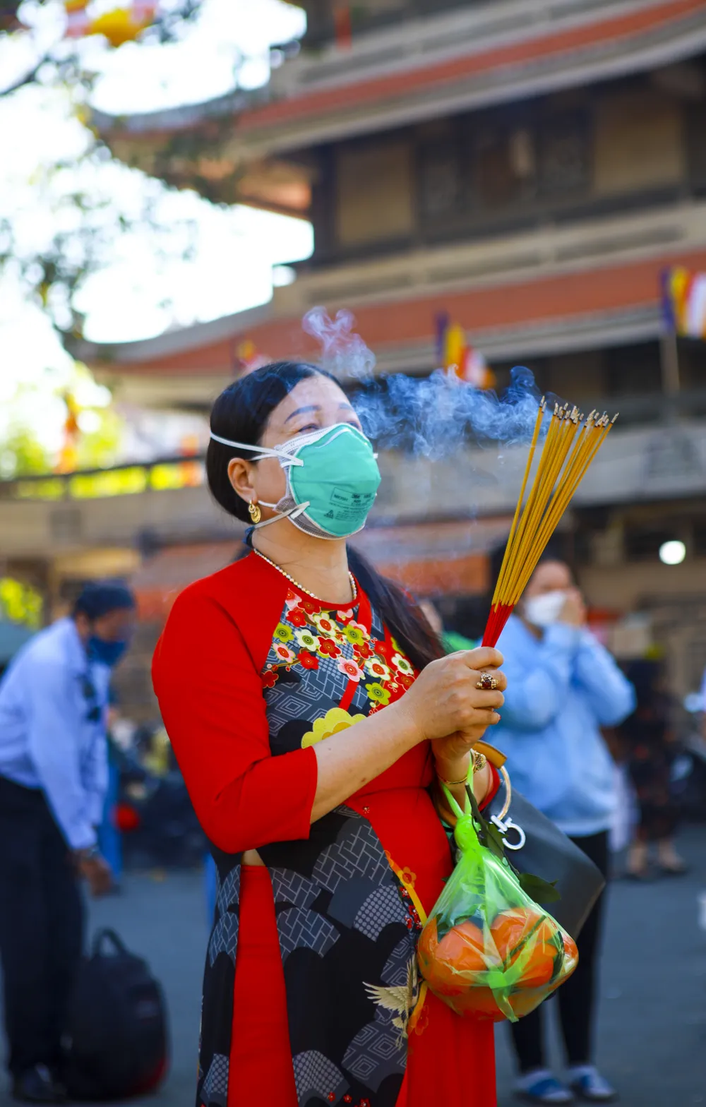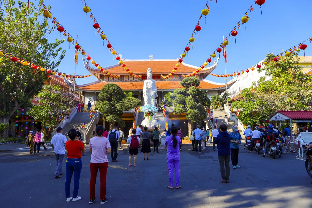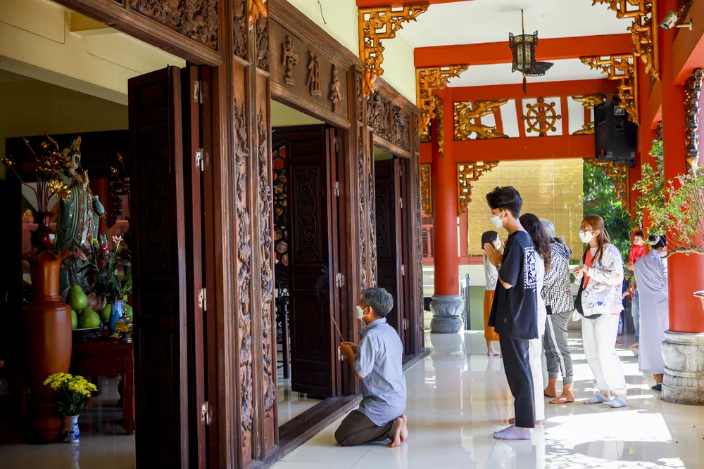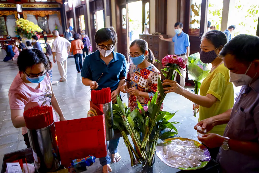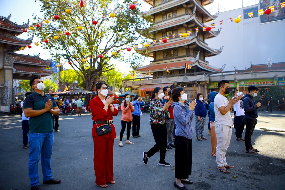 Do ảnh hưởng của dịch, nhiều ngôi chùa ở TP.HCM chỉ tổ chức cho bá tánh, Phật tử dâng hương mà không tổ chức phần hội. Nhiều người vượt đường xa đến những ngôi chùa mà mình trông cậy để gửi gắm ước mong rồi ra về. Khách đến và đi trật tự, không nán lại lâu để phòng dịch.