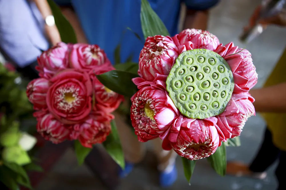 Những đóa hoa sen dâng lên bàn thờ Phật.