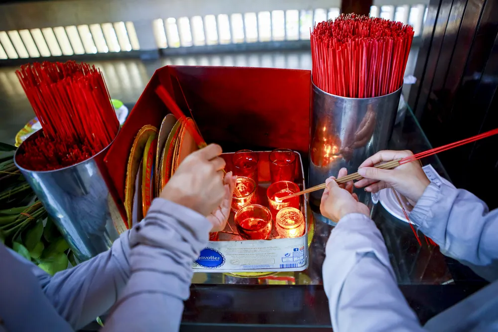 Người dâng thắp hương cúng Phật.