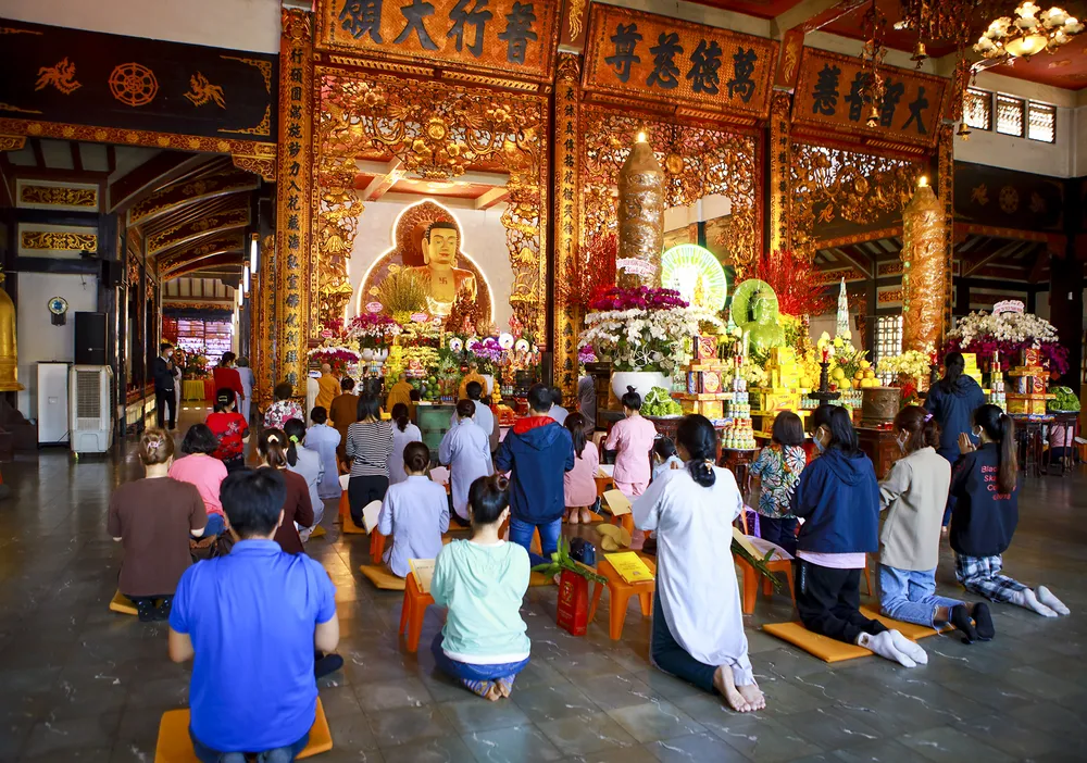 Chùa bày biện kinh Phật để phục vị nghi thức cúng lễ của người dân.