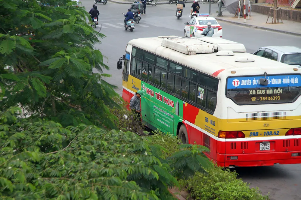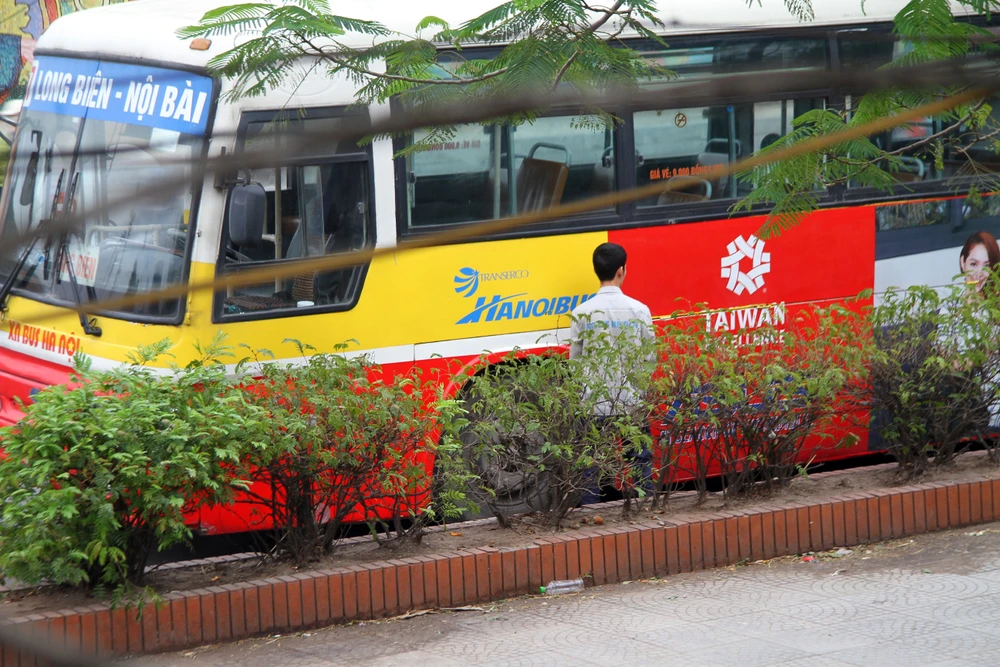 Một nhân viên xe buýt cũng tận dụng tối đa sự che chắn của xe buýt để tiểu bậy.