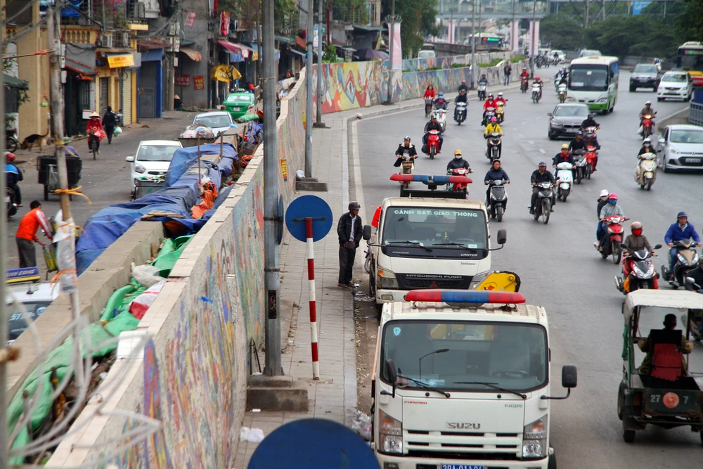 Đây là hình ảnh tại đường Trần Nhật Duật (Hà Nội), gần ngay dưới chân cầu Long Biên, một người đàn ông thản nhiên "tè" bậy ngay cạnh xe CSGT.