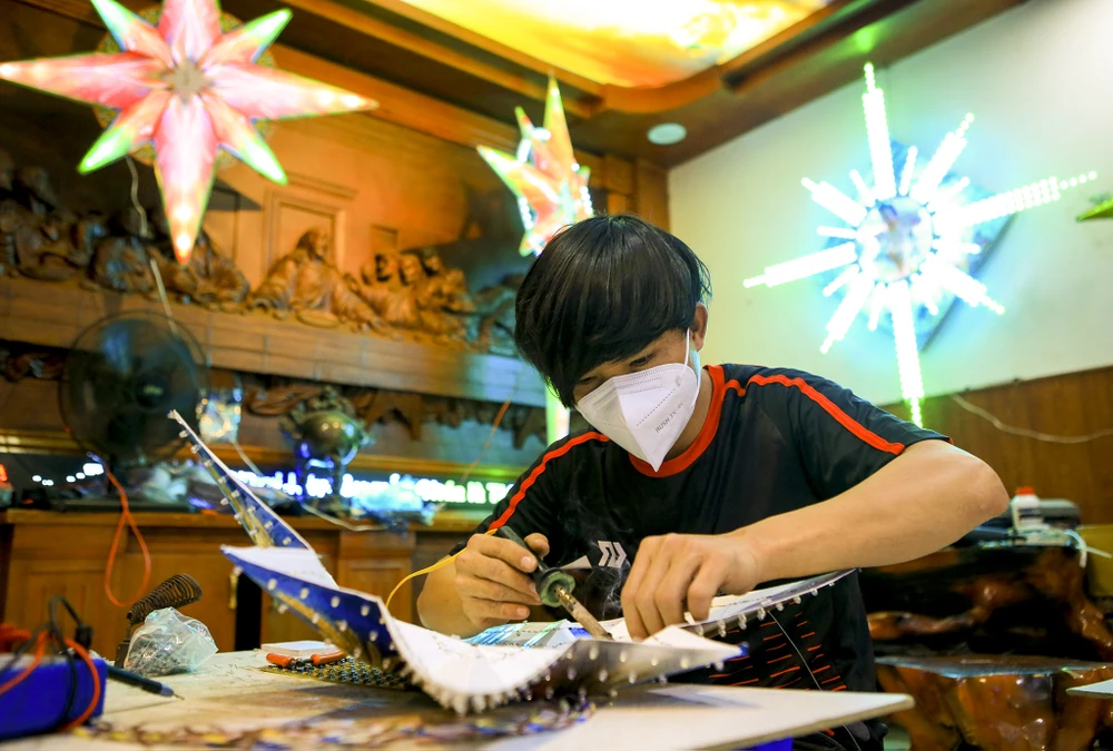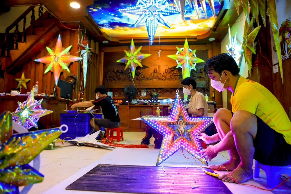 Những ngày cận Giáng sinh, bên trong ngôi nhà của ông Lương Vĩnh Cửu thuộc giáo xứ Nghĩa Hòa (quận Tân Bình, TP.HCM), công việc của những người thợ tất bật hơn bao giờ hết để tạo ra hàng ngàn ngôi sao phục vụ Giáng sinh.