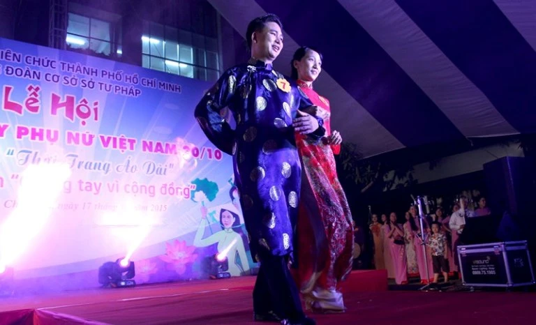 Cặp đôi của báo Pháp Luật TP.HCM tham dự phần thi áo dài tự chọn.