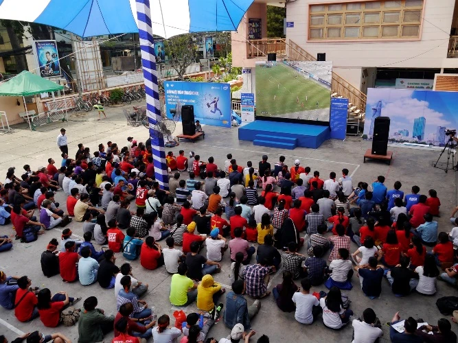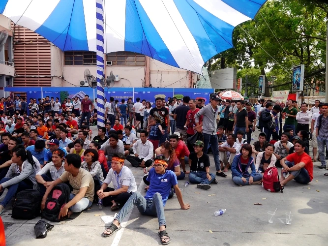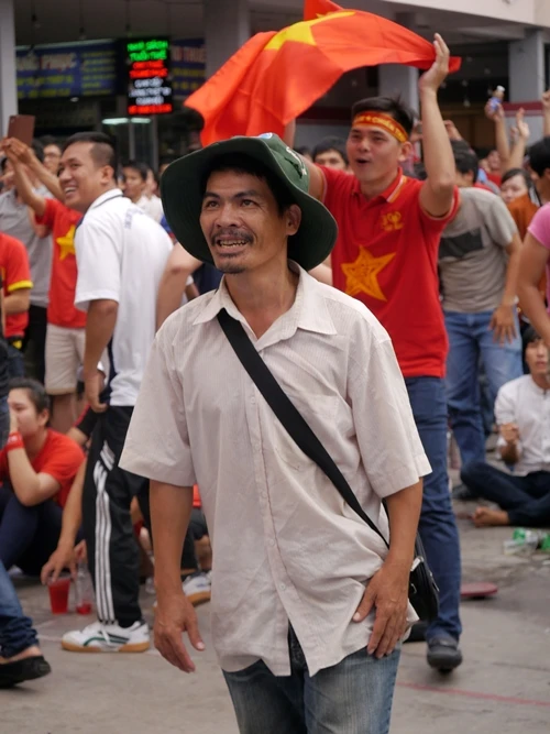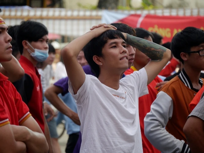 Rất nhiều những người lao động không có điều kiện để vào sân cổ vũ cũng đã có mặt sát ở hàng rào nhằm tiếp sức cho các chàng trai của HLV Miura