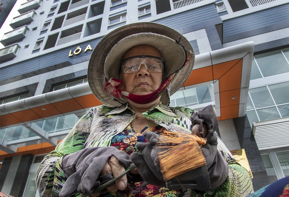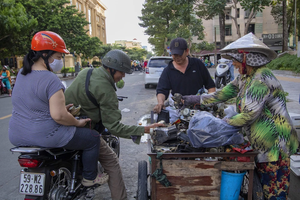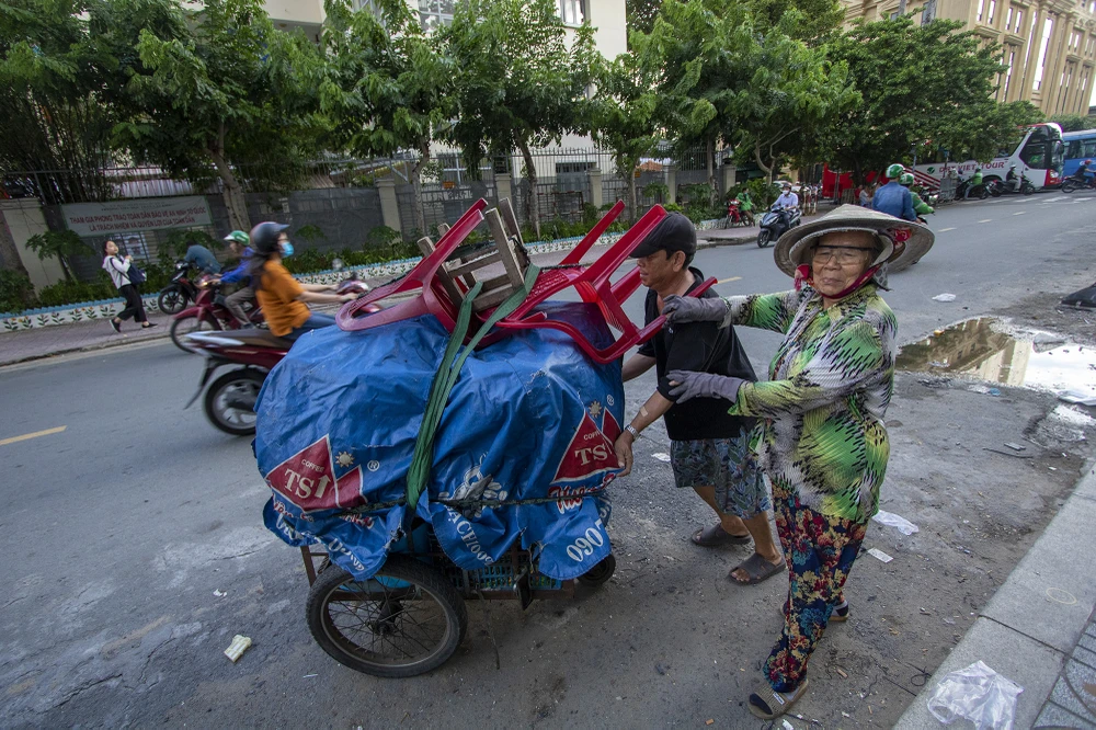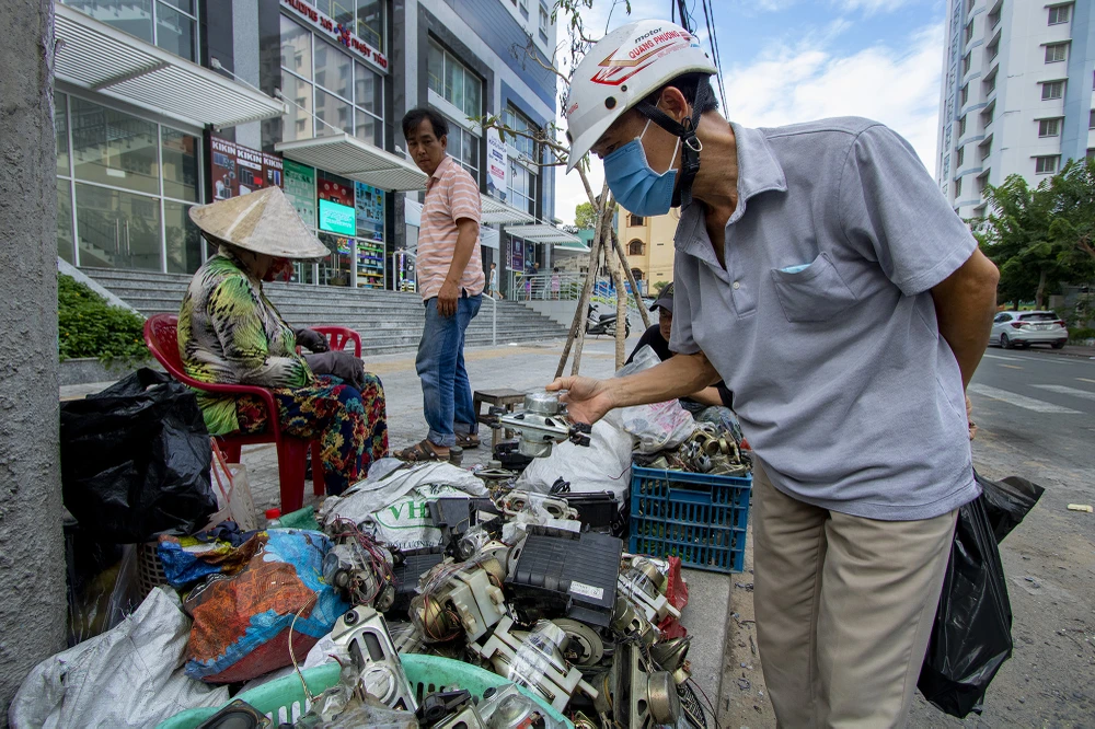 Ngày nào cũng vậy, tầm hơn 17 giờ, bà và con trai lại đẩy xe linh kiện trở về nhà kết thúc một ngày kiếm sống trên vỉa hè Sài Gòn.