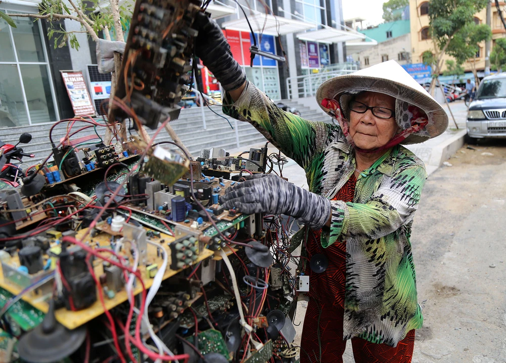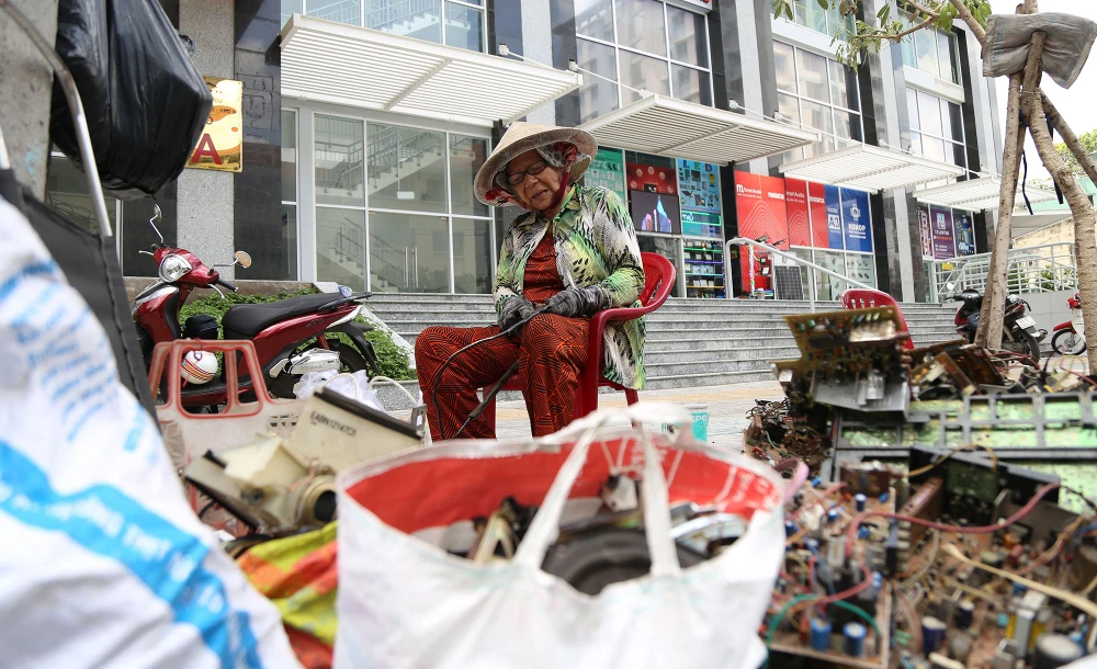 Đúng 10 giờ sáng mỗi ngày tại góc đường Vĩnh Viễn - Lý Thường Kiệt (quận 10, TP.HCM), người ta lại thấy một nguời phụ nữ cặm cụi mưu sinh bên đống đồ linh kiện tivi cũ. Người phụ nữ đó là bà Cao Thị Thủy (76 tuổi), một người đã gắn bó với công việc thu mua tivi cũ, sau đó đập ra để bán linh kiện kiếm sống suốt hơn 20 năm qua ở Sài Gòn.