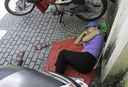 Khi cơn buồn ngủ kéo đến, họ chẳng thiết phải ngại ngần - Ảnh: Phước Tĩnh
