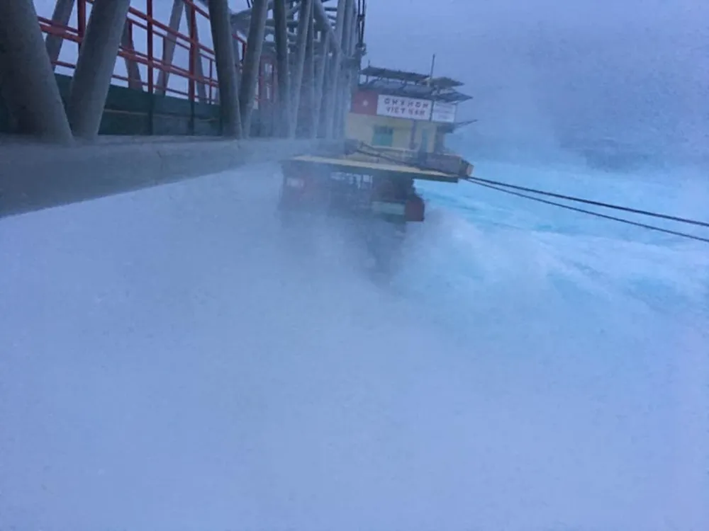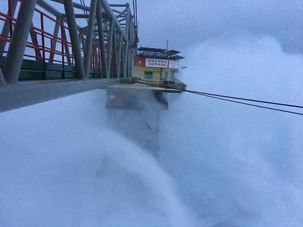 Những cột sóng nhô lên phủ xuống nhà giàn...
