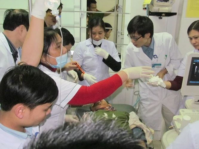 (PLO) - 1 giờ sáng nay (26-3), đoàn công tác của BV Việt Đức gồm bốn bác sĩ gồm một chuyên gia sọ não, một chuyên gia chấn thương chung, một chuyên gia chấn thương bụng và một chuyên gia gây mê hồi sức đã lên đường vào Hà Tĩnh để cấp cứu cho các nạn nhân. Đoàn công tác của Bệnh viện Việt Đức.