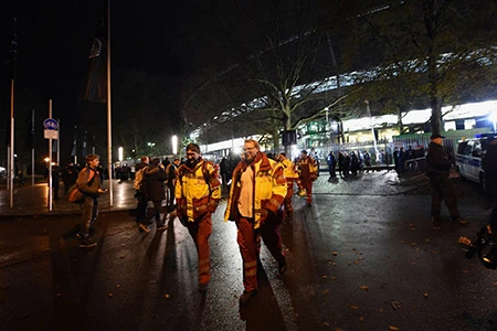 Chủ tịch tạm quyền của LĐBĐ Đức Reinhard Rauball cho biết nơi đóng quân của đội tuyển Đức chỉ cách sân vận động 5 km. Các cầu thủ Đức đang trên đường di chuyển đến sân vận động đã phải chuyển hướng đến một địa điểm bí mật khác dưới sự hộ tống của cảnh sát, trong khi đó, Thủ tướng Đức Angela Merkel dự kiến sẽ tham dự trận giao hữu này cùng các thành viên trong nội các lúc đó vẫn chưa đến sân.