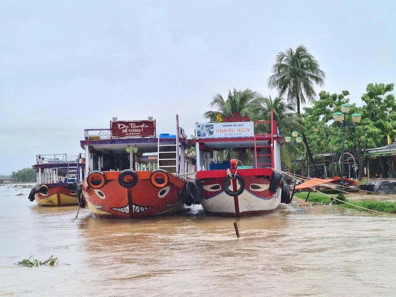 Tàu du lịch được đưa đến nơi an toàn đề phòng lũ mạnh đổ về.