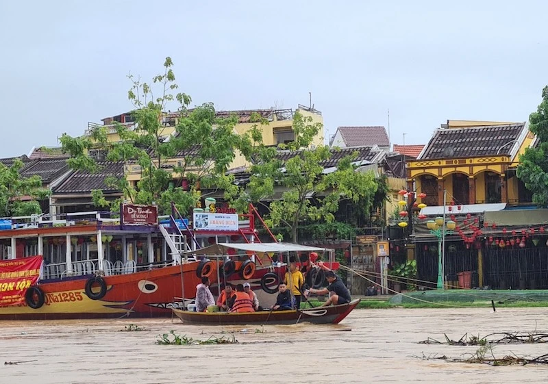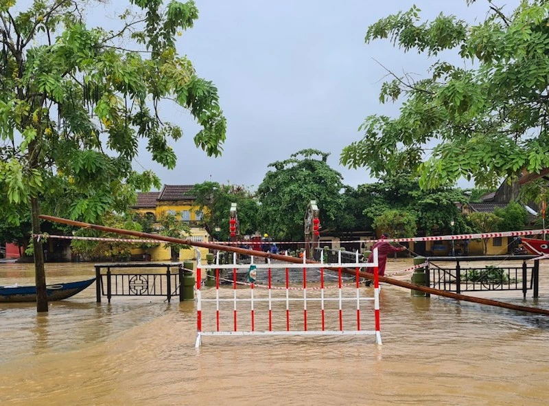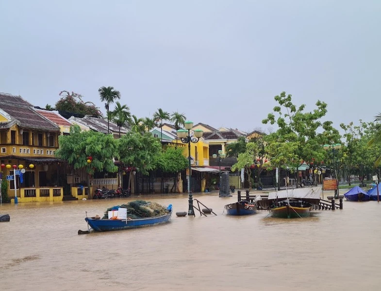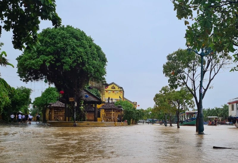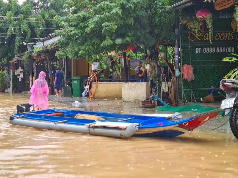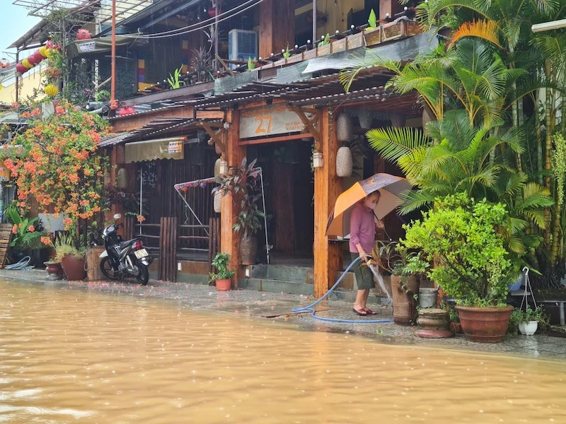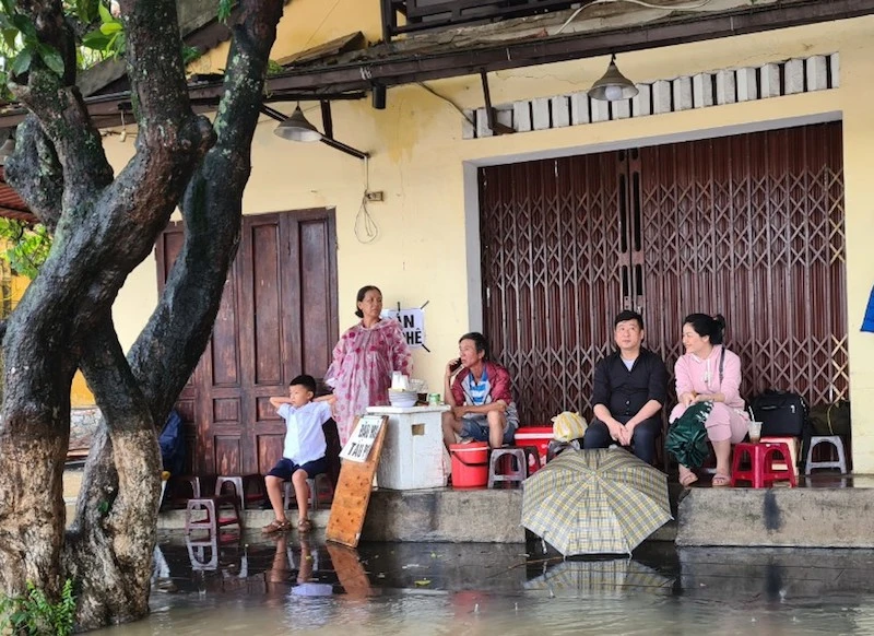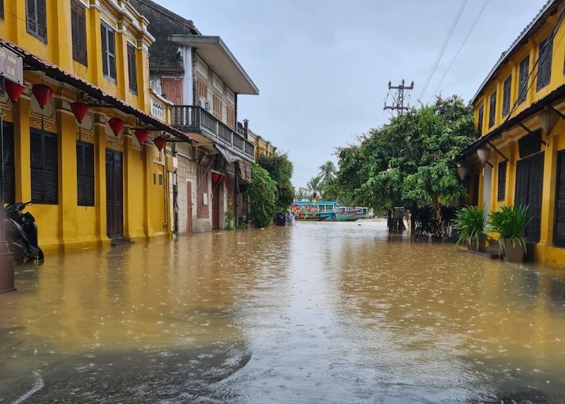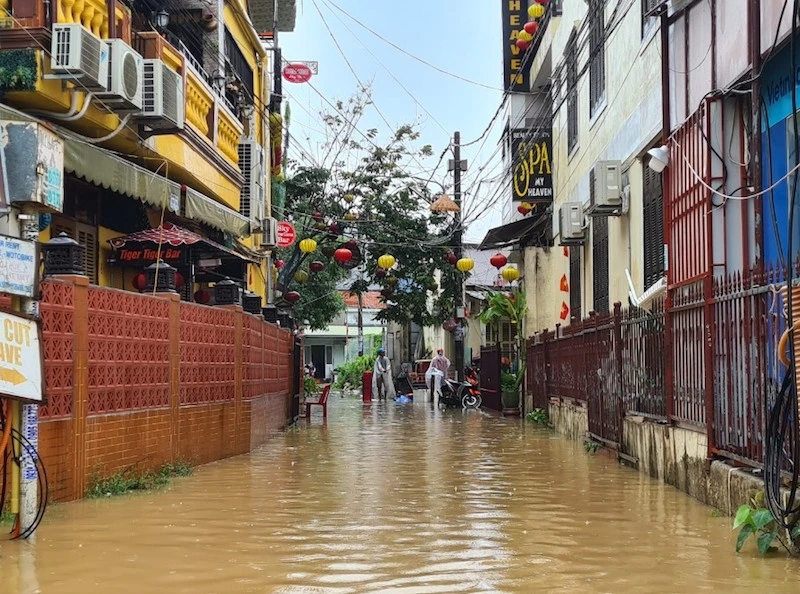 Từ tối 7-10, nước bắt đầu dâng khiến nhiều tuyến đường trong khu phố cổ bị ngập.