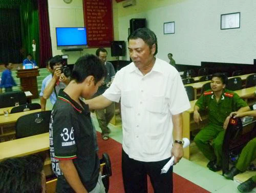 Ông Nguyễn Bá Thanh nguyên Bí thư Thành ủy Đà Nẵng động viên các em thiếu niên chậm tiến cố gắng phấn đấu để tiến bộ. Ảnh: baomoi
