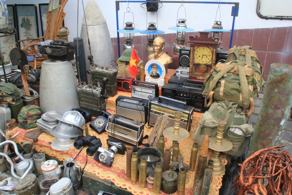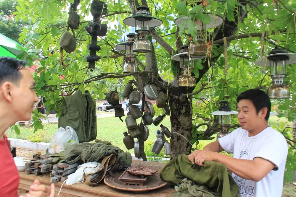 Những vật dụng được sử dụng trong chiến tranh từ chiếc đèn bão tới bi đông nước và quần áo của phi công Mỹ sử dụng trong chiến tranh cũng được chào bán tại chợ