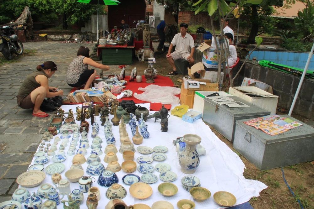 Phiên chợ đồ xưa Đà Thành vừa mở cửa đã có rất nhiều người tìm đến để mua và trao đổi hiện vật quý.