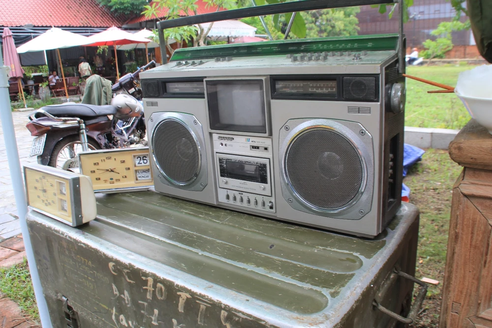 Một chiếc đài cũ xưa đồng thời là chiếc tivi đen trắng rất độc đáo được những người sưu tầm đồ cổ cho ra chợ phiên lần này. Chiếc đài kiêm luôn tivi này có giá chào hàng là 1,7 triệu đồng.