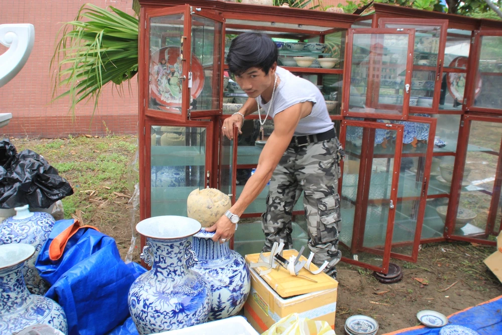 Những chiếc bình gốm xưa rất đẹp được sưu tầm, trưng bày và bán tại chợ.