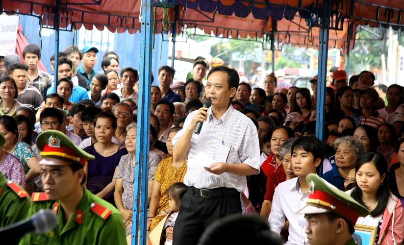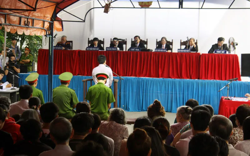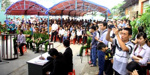 Rất đông người dân kéo đến theo dõi phiên tòa